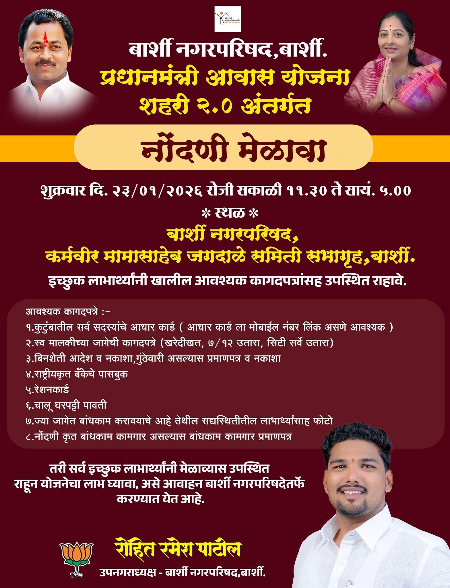 बार्शी नगर परिषद बार्शी प्रधान मंत्री आवास योजना शहरी २.० अंतर्गत भव्य मेळावा.
